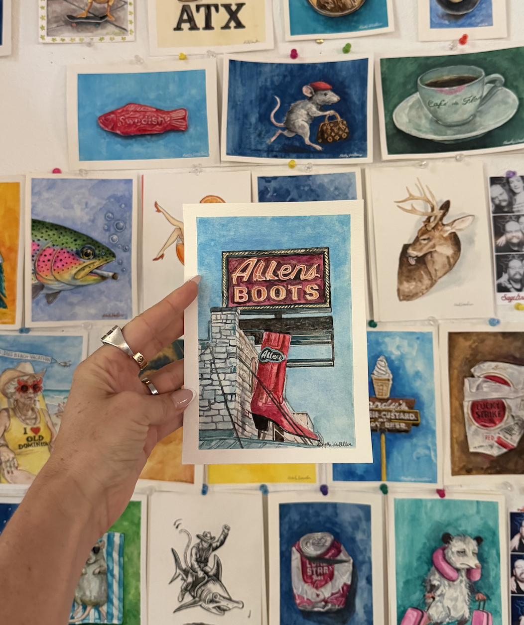 Categories: All ORIGINAL ART CUSTOM COWBOY SHIT CRUSHED CANS QUIRKY FOOD AUSTIN RELATED ANIMALS PRINTS RACCOON AUSTIN RELATED All | ORIGINAL ART | ANIMALS | PRINTS | Quick View "APEROL SPRITZ" ORIGINAL WATERCOLOR $75.00 I WANT A SPRITZ! Added! Quick View "SEE YOU NEXT TUESDAY" ORIGINAL WATERCOLOR $175.00 gimme dis Added! Quick View "PINK BRONC" PRINT (PRE-ORDER) from $25.00 Select Size 8"x10" 5"x7 PRE-ORDER NOW Added! Quick View "CAPRISUN" ORIGINAL WATERCOLOR $50.00 Add To Cart Added! Quick View "KEEP AUSTIN WEIRD BLACK LAB" ORIGINAL WATERCOLOR $50.00 Add To Cart Added! Quick View "8 BALL" ORIGINAL WATERCOLOR $45.00 GIMME DAT Added! Quick View "KEEP AUSTIN WEIRD" ORIGINAL WATERCOLOR $200.00 Gimme Dat Bat Added! Quick View 'SWEDISH FISH" ORIGINAL WATERCOLOR $175.00 add to cart! Added! Quick View "JO'S COFFEE" ORIGINAL WATERCOLOR $75.00 Sold Out Sold Out Added! Quick View 'LUCKY PENNY" ORIGINAL WATERCOLOR $75.00 I WANT LUCK! Added! Quick View "ALLENS BOOTS" ORIGINAL WATERCOLOR $150.00 I <3 ALLENS Added! Quick View "GOLDFISH" ORIGINAL WATERCOLOR $200.00 I WANT GOLDFISH Added! Quick View WONDERBREAD" ORIGINAL WATERCOLOR (Copy) $150.00 add to cart Added! Quick View "CRUSHED LONESTAR" ORIGINAL WATERCOLOR $200.00 gimme dat beer Added! Quick View "ULTRA CRUSHED" ORIGINAL WATERCOLOR $150.00 gimme dat beer Added! Quick View "RING POP" ORIGINAL WATERCOLOR $75.00 ADD TO MY CART Added! Quick View "I LOVE ATX" ORIGINAL WATERCOLOR $70.00 PUT THE ART IN THE CART Added! Quick View "DALMATIANS" ORIGINAL WATERCOLOR $175.00 PUT THE DOG IN THE CART Added! Quick View "FREQUENT CRIER MILES" ORIGINAL WATERCOLOR $150.00 PUT THE OPOSSUM IN THE CART! <3 Added! Quick View "MATTS EL RANCHO" ORIGINAL WATERCOLOR $175.00 PUT IT IN THE CART! <3 Added! Quick View "SMILEY" ORIGINAL WATERCOLOR $50.00 ADD TO CART Added! Quick View "CHERRIES" ORIGINAL WATERCOLOR $80.00 PUT IT IN MY CART Added! Quick View "DESERT DILLO" ORIGINAL WATERCOLOR $175.00 GIMME DA DILLO Added! Quick View "STRAWBERRY DUM-DUM" ORIGINAL WATERCOLOR $150.00 PUT IT IN MY CART Added! Quick View "LUCKY LADYBUG" ORIGINAL WATERCOLOR $110.00 I WANT LUCK! <3 Added! Quick View "TAKIN FLIGHT" ORIGINAL WATERCOLOR $150.00 need this piece! Added! Quick View CUSTOM PET PORTRAIT $200.00 i want a custom pet portrait Added! Quick View "LUCKY STRIKE" ORIGINAL WATERCOLOR $200.00 gimme the box Added! Quick View "COORS BANQUET" ORIGINAL WATERCOLOR $150.00 I WANT IT Added! Quick View "COORS LIGHT" ORIGINAL WATERCOLOR $150.00 PUT THE CAN IN THE CART Added! Quick View "CRUSHED LONE STAR BEER" ORIGINAL WATERCOLOR $150.00 PUT IT iN THE BAG Added! Quick View "RAMBLER" ORIGINAL WATERCOLOR $150.00 RAMBLER! I NEED IT! Added! Quick View "LABUBU" ORIGINAL WATERCOLOR Sale Price: $75.00 Original Price: $150.00 Sale PUT THE LABUBU IN THE CART Added! Quick View "UNDER" WATERCOLOR PRINT $25.00 I NEED THIS Added! Quick View "DEAD TO ME" WATERCOLOR PRINT $30.00 gimme dis print Added! Quick View Picasso's Print Club – Monthly Art Subscription $10.00 every month Subscribe Added! Quick View "DEEP EDDY RACCOON" WATERCOLOR PRINT $28.00 IN THE BASKET! Added! Quick View Deep Eddy Raccoon (SAMPLE 5X7) $18.00 PUT THE RACCOON IN THE CART Added! Quick View "LONE STAR LIGHT" ORIGINAL WATERCOLOR $200.00 1 <3 LONESTAR Added! Quick View "DEAD TO ME" ORIGINAL WATERCOLOR $200.00 Sold Out Sold Out Added! Quick View "GUSHERS CANDY" ORIGINAL WATERCOLOR $150.00 Sold Out Sold Out Added! Quick View "GRILLOS PICKLES" ORIGINAL WATERCOLOR $200.00 GIMME THEM PICKLEZ Added! Quick View "UNDER" ORIGINAL WATERCOLOR $200.00 I WANT THIS Added! Quick View "SANDY'S FROZEN CUSTARD" ORIGINAL WATERCOLOR $200.00 I NEED THIS Added! Quick View "YELLOW TOMATO" ORIGINAL WATERCOLOR $120.00 Add To Cart Added!